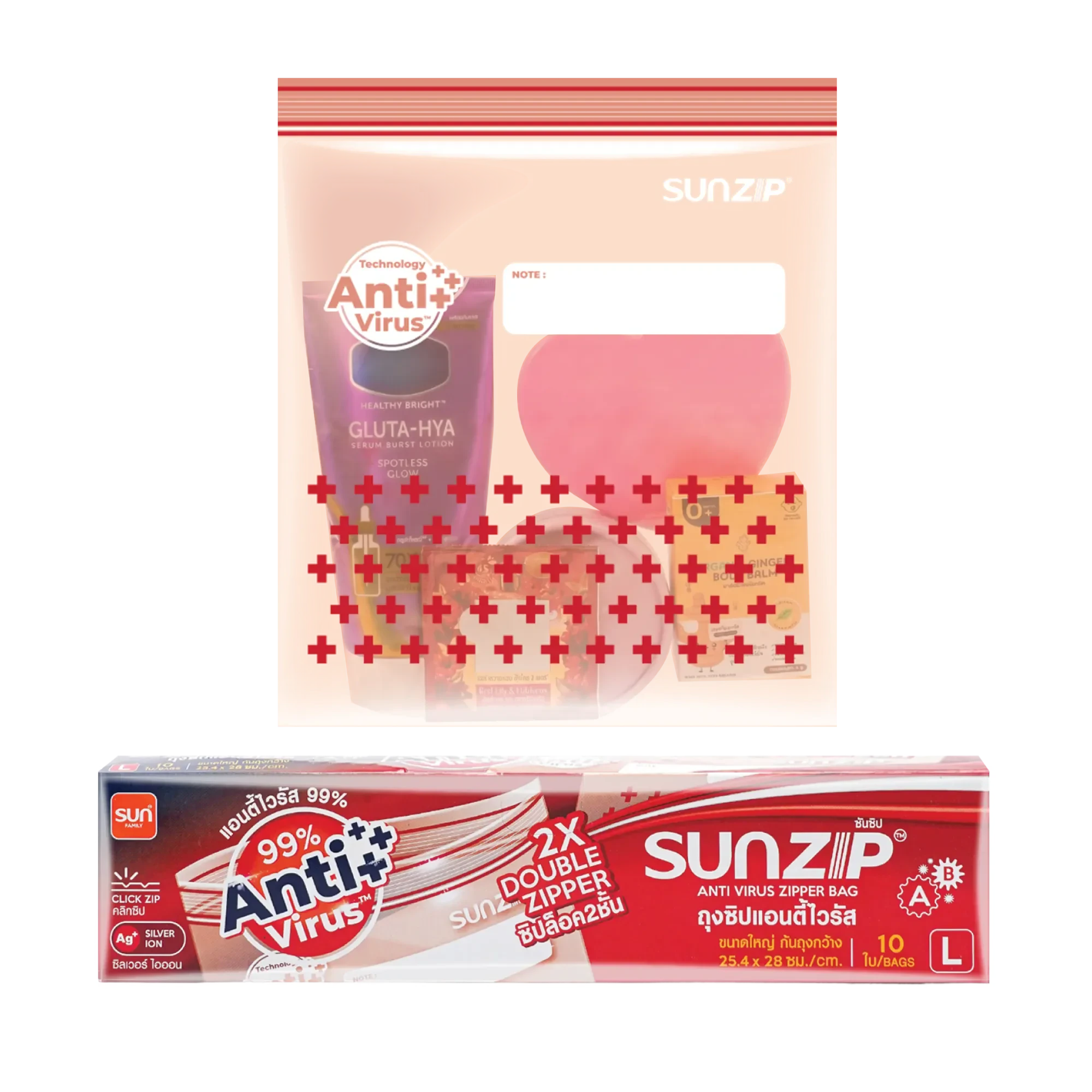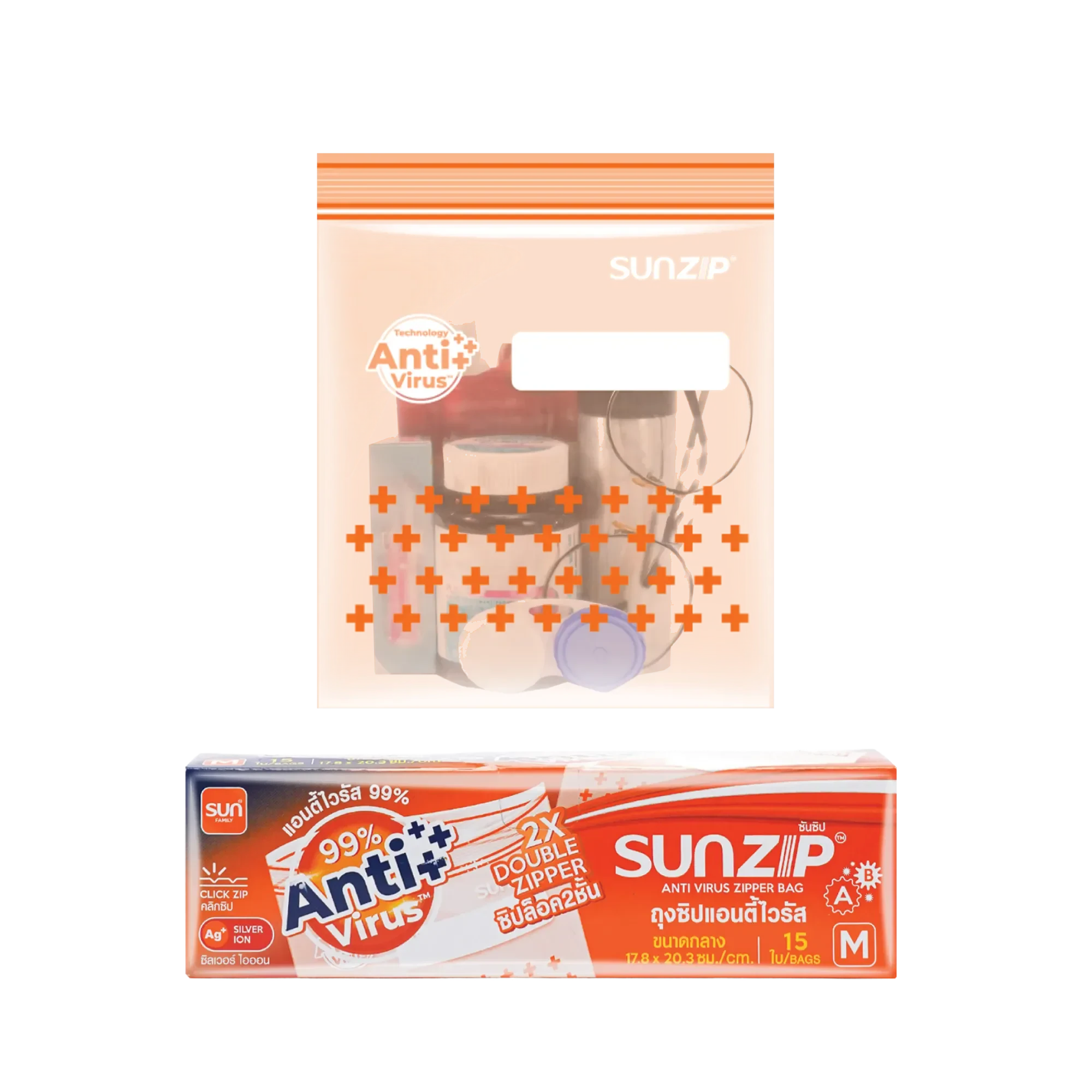 The SUNZIP Anti Virus Zipper Bag provides advanced protection with SILVER ION Technology from Japan, proven to inhibit over 99% of virus growth.*